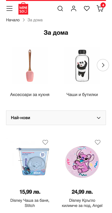 За основа на новата онлайн платформа на MINISO избрахме нашето собствено решение RZ Commerce, което предоставя необходимата гъвкавост за работа с разнообразния асортимент от над 5000 артикула. Това позволи изграждането на персонализирана структура от категории и подкатегории, отразяваща богатата продуктова гама – от домашни аксесоари до лицензирани продукти с Disney, Marvel и Hello Kitty.