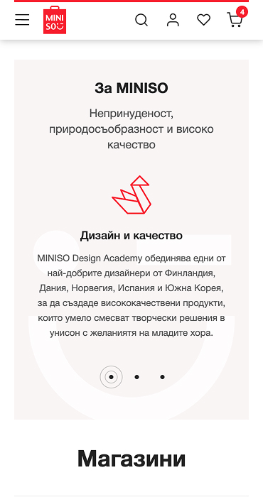 Цялостната визия на онлайн магазина беше проектирана с мобилно-първи подход, отразяващ факта, че над 70% от потребителите на MINISO пазаруват от мобилни устройства. Интерфейсът съчетава минималистичен дизайн с ярки акценти, характерни за визуалната идентичност на бранда. Особено внимание обърнахме на оптимизацията на чекаут процеса, намалявайки го до минимален брой стъпки.
